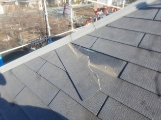 屋根の割れが多く工事開始まで応急処置を行いました。