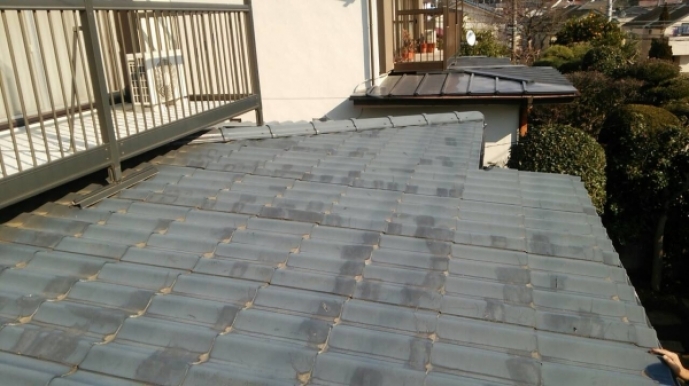 既存のかわらUです。何回塗ってもすぐ剥がれるのが気になり葺き替えることになりました。