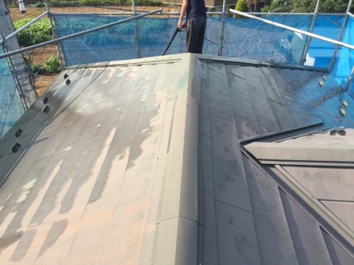 古い塗膜を落として遮熱塗料専用のプライマー(下塗り材)を塗るために