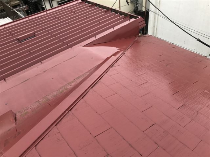 ▼ 屋根葺き替え ▼ 屋根塗装 ▼ 雨どい交換・修理 ▼ リフォーム・内装工事など 屋根葺き替え コロニアルに横暖ルーフカバー工法 費用概算 足場工事、屋根工事、塗装工事 92万円 工期 5日間 棟や換気口部分はカバー工法の場合でも取り替えます。 コロニアル本体をカバー工法の場合は使用致します。 天窓や通気口は同質のガルバリウムで、、、 板金加工で納めます。 施工前です。 施工後です、塗装の心配などが無くなりますね。 ❮前のページ 一覧へ戻る 次のページ❯