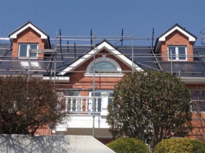 急勾配の場合は別途屋根上にも足場が必要になります。