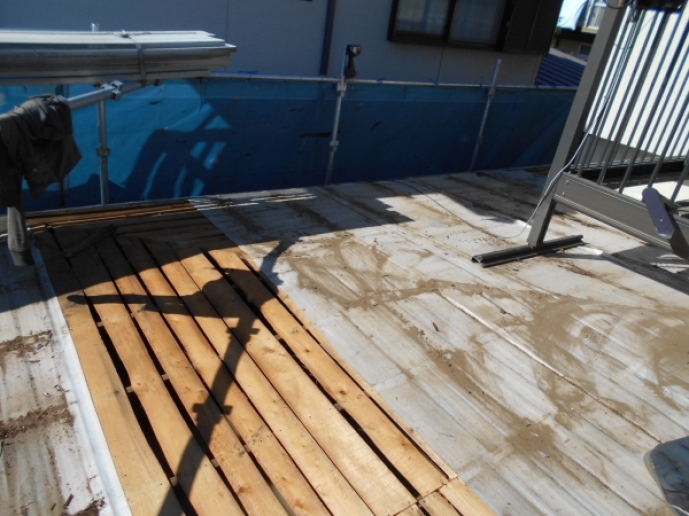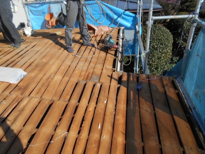 桟葺き屋根と下葺きシート(ルーフィング)を剥がすと、下地が出てきます。