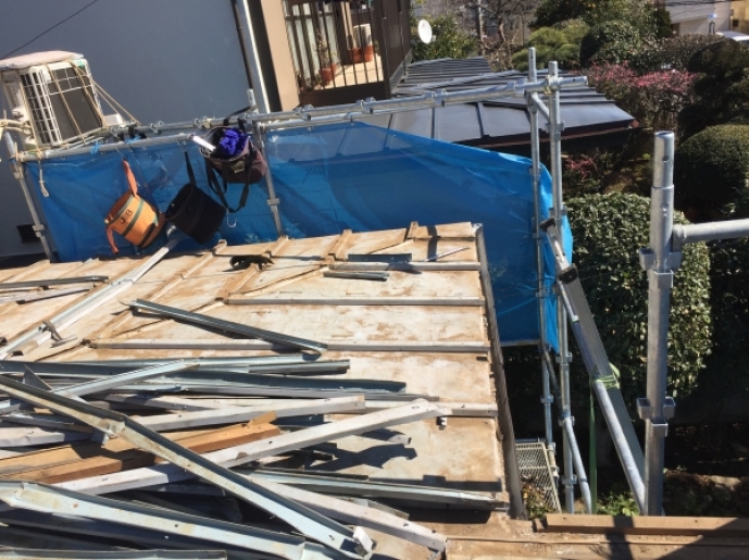 かわらUは既存の桟葺き屋根に被せて有るので、2重に剥がすようになります。
