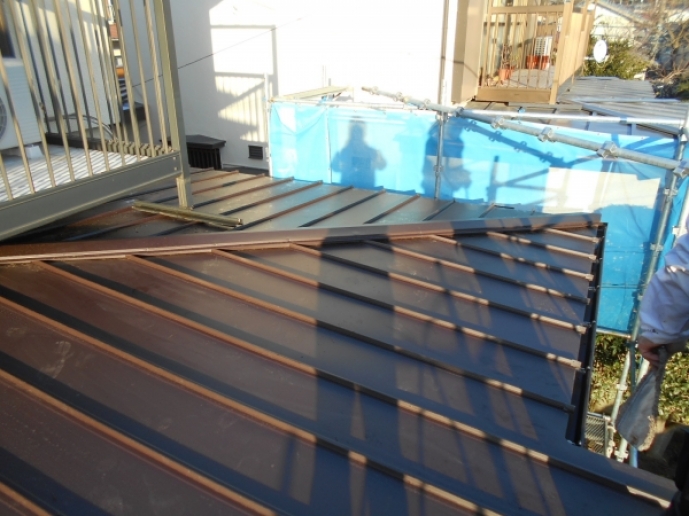 トタン屋根の上から、かわらUでカバーしてましたが、塗装の剥がれでお手入れが大変なのでガルバニウム金属の屋根に葺き替えました。