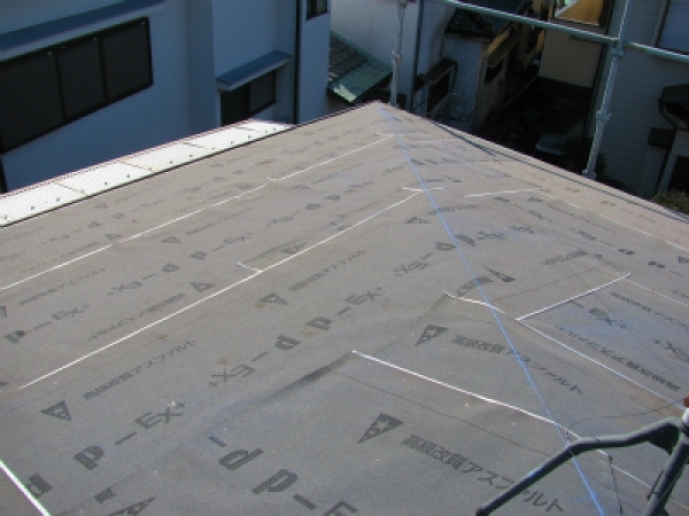 ルーフィングは工事中の雨対策と工事後も下地と屋根材の結露などから守ります。