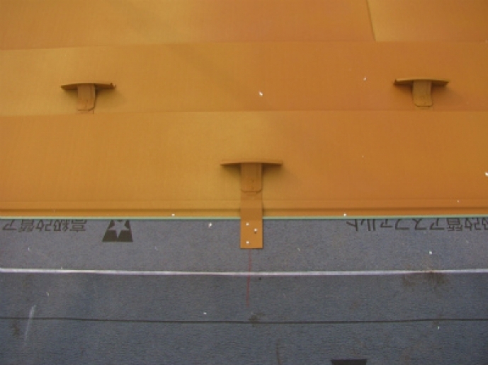施工中のお写真です、雪止めは金属屋根材の場合は標準工事で含まれておりますので、