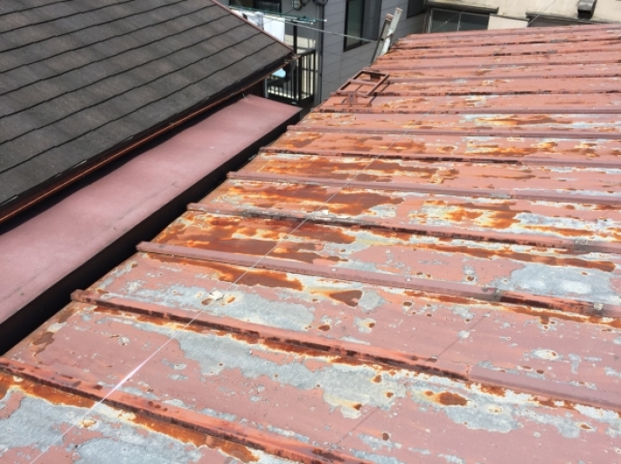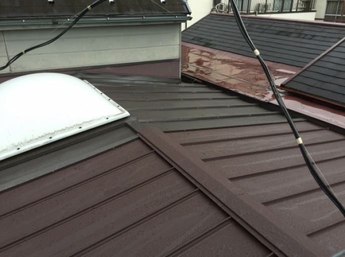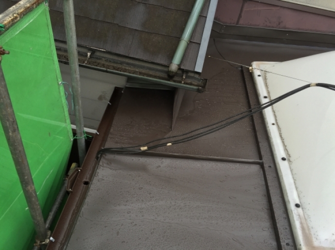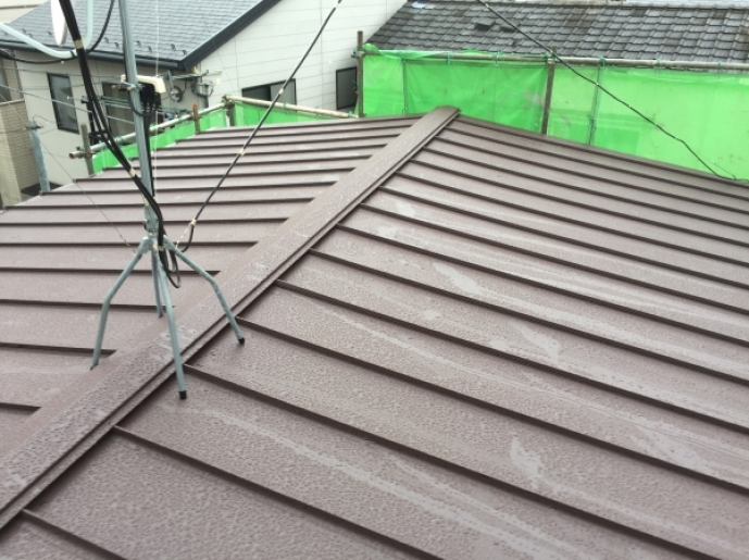 トタン屋根からガルバニウム材で縦平葺きを施工致しました。