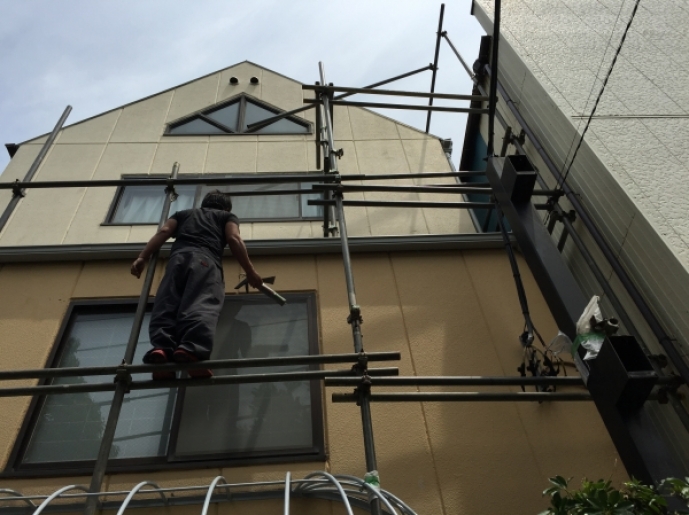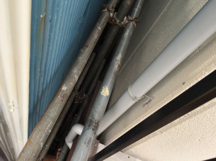 4階建ての雨どい工事です。雪害の為、火災保険で対応しました。