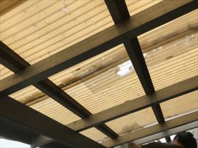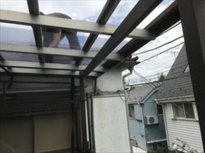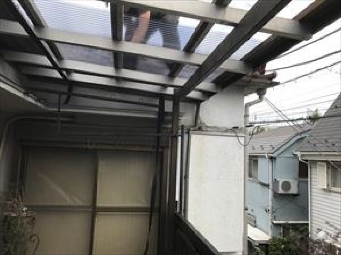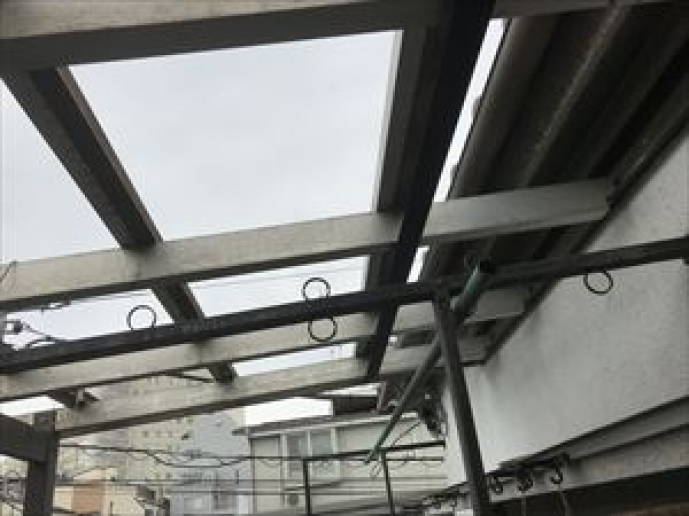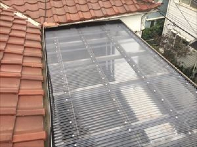 波板の交換工事です。ヒョウが降って割れてしまった波板の交換です。