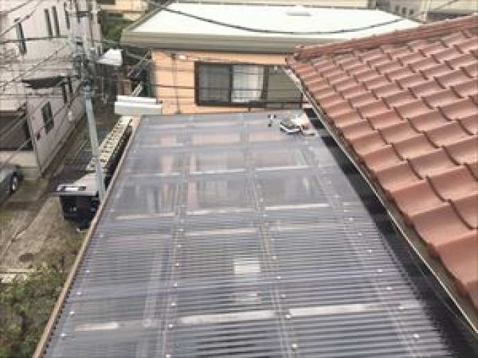 ブルーシートで割れた波板からの雨漏りを防いでいたそうです。