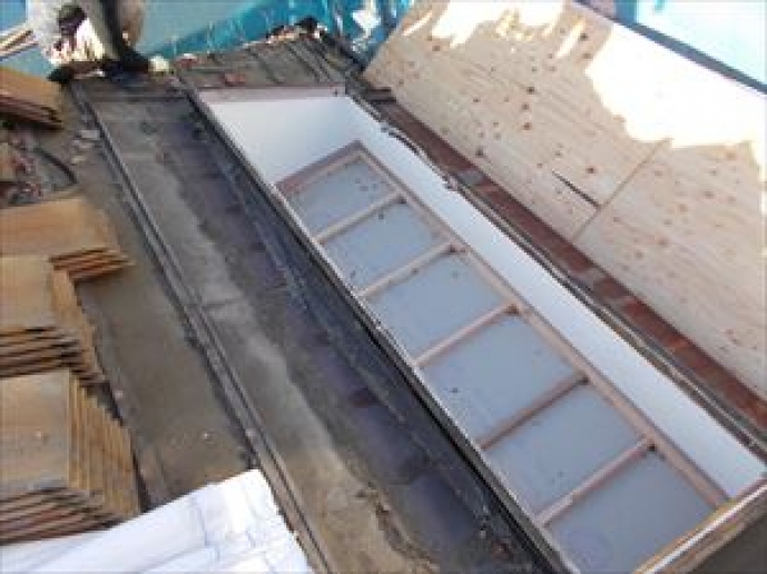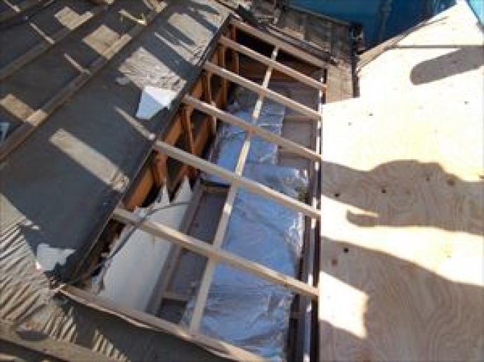 雨漏りの原因となっていたトップライトです。屋根の下地を作ります。