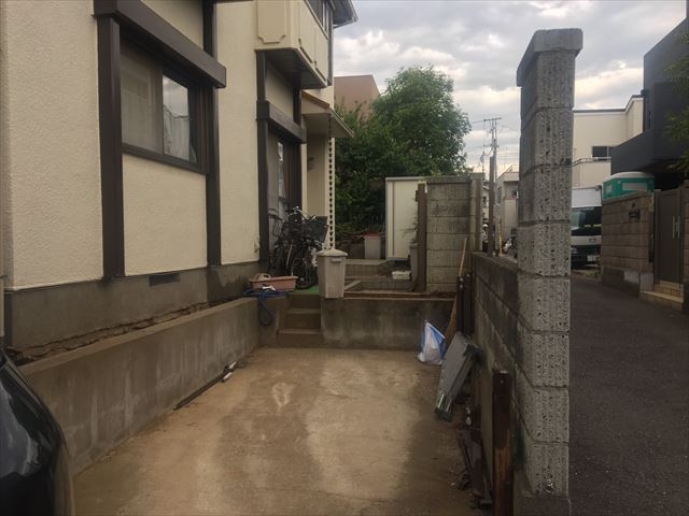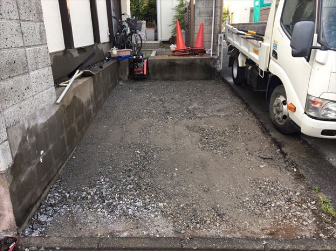 以前屋根外壁工事をさせて頂いたお客様から車のサイズアップに伴いご相談を頂きました。駐車場のスペースを大きくする工事を行いました。
