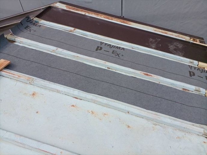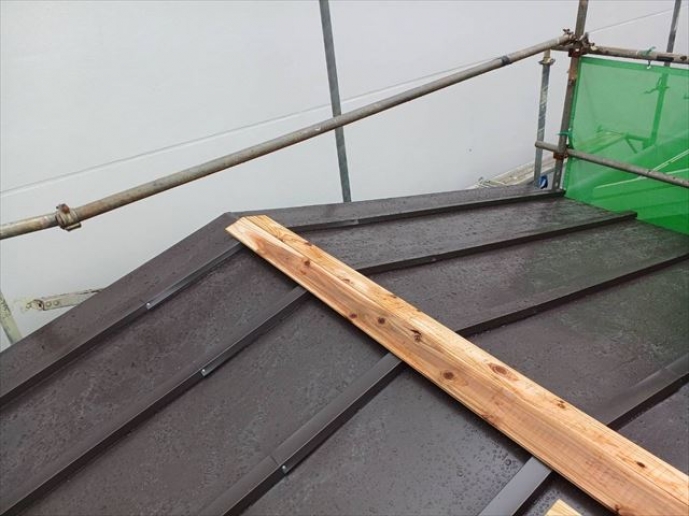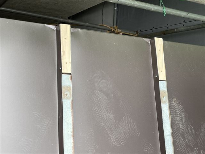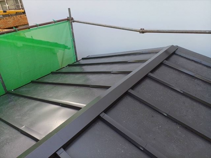 亜鉛鉄板瓦棒の重ね葺き(カバー工法)です。