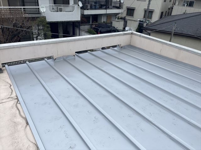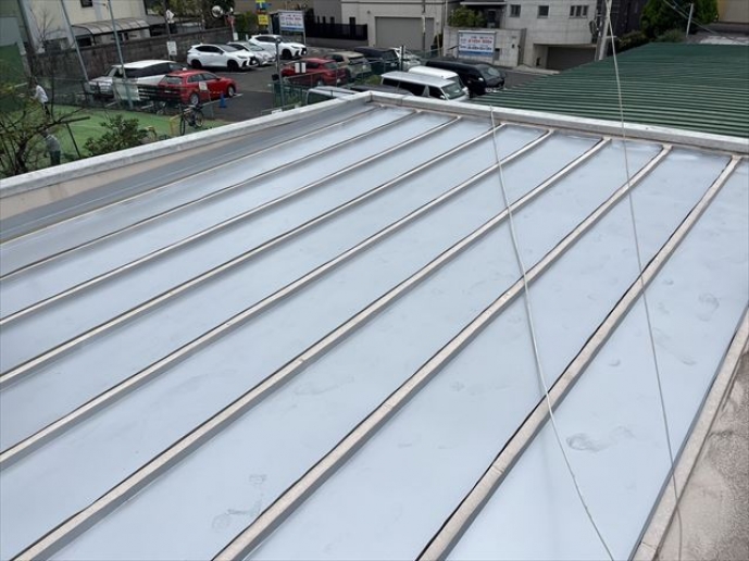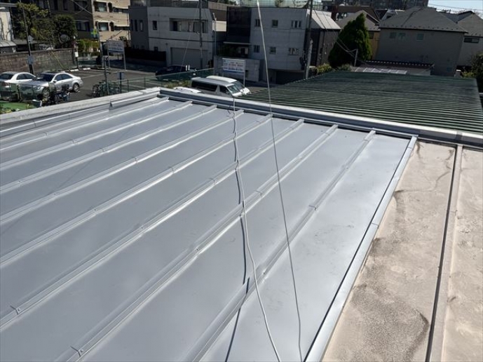 ▼ 屋根葺き替え ▼ 屋根塗装 ▼ 雨どい交換・修理 ▼ リフォーム・内装工事など 屋根葺き替え クラブハウスの屋根葺き替え (重ね張りカバー) 費用概算 70万円 工期 3日間 テニスクラブのクラブハウスの屋根(瓦棒屋根)葺き替え工事を行いました。 金属屋根の上に重ね張り工法で雨漏りしている半面を葺き替え施工致しました。 既存の屋根は継ぎはぎで施工していた事が原因で雨漏りが発生したため、 新規屋根は屋根上で1枚で加工したので雨漏りが止まりました。 次のページ❯ 一覧へ戻る